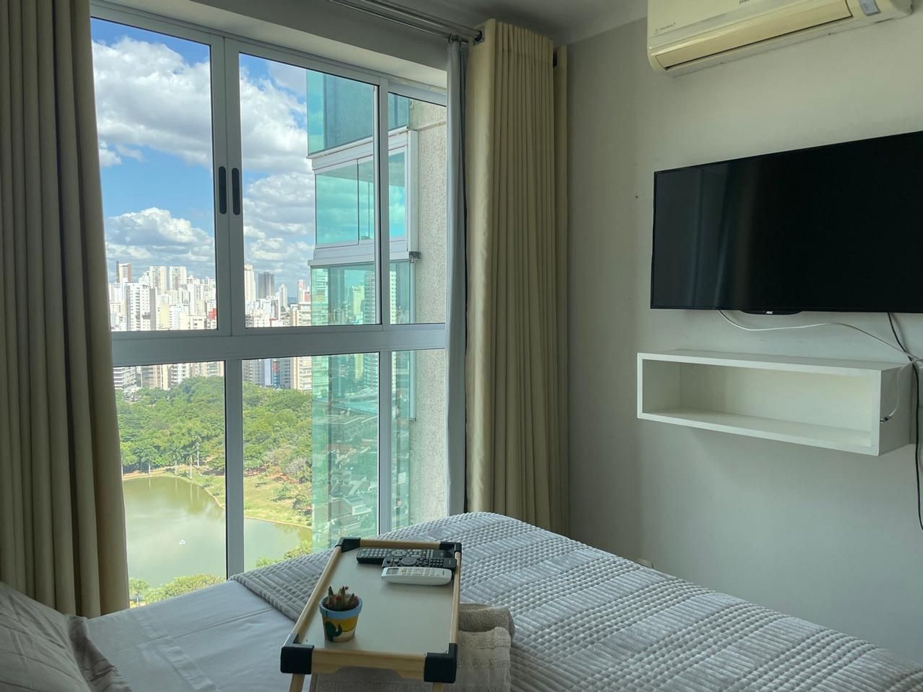 Para relaxar ou trabalhar, este é um espaço calmo e cheio de estilo, que fica nas alturas com uma vista encantadora do Parque Vaca Brava e da cidade de Goiânia. No coração do Setor Bueno, o que por si só já explica as comodidades dos arredores, como drogarias, restaurantes, bares, supermercados e shoppings. Permita-se!